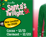 ✨ Dash into holiday magic at the AdventHealth Santa’s Twilight 5K! ✨Kick off the holidays with a sparkling night run through the heart of the Space Coast beginning near Historic Cocoa Village at the Catherine Schweinsberg Rood Central Library. The course is out and back along Indian River Drive and packed with festive cheer — sprint through a dazzling LED light tunnel at the start and finish, enjoy the twinkling holiday lights along the Cocoa Riverfront and get lifted by the energy of our merry Holiday Cheer Zones. Every participant will unwrap a bundle of holiday goodies: a long-sleeved race shirt, a holiday-themed finisher medal, glowing necklaces to light your way, free race photos, and sweet treats at the finish line — holiday cookies and hot chocolate!Wear your best holiday outfit — from Santa hats to reindeer antlers — because we’ll have costume contests and prizes for the most festive runners. Gather your family and friends, and let’s make this a holiday tradition to remember! 🎅🎁🎄