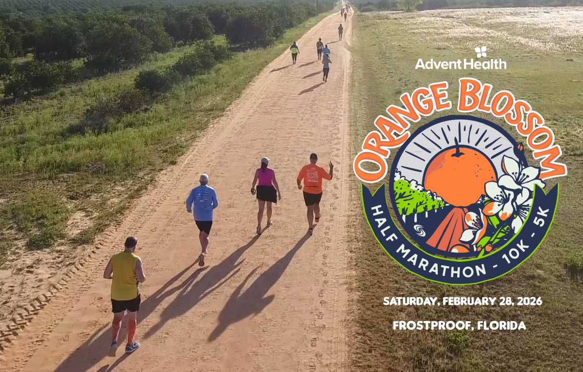 Join us in Frostproof for a beautiful Half Marathon along country clay roads in one of the old citrus growing regions of Florida. Frostproof is perfectly positioned in South Central Florida—just a short drive from Orlando, Tampa, and South Florida.  The OBH features a race for every runner including a 10K, 5K, and the 15K Orange Blossom Challenge (10K + 5K),   Over 90% of the courses is on clay roads.  Frostproof is perfectly positioned in South Central Florida—just a short drive from Orlando, Tampa, and South Florida.  .